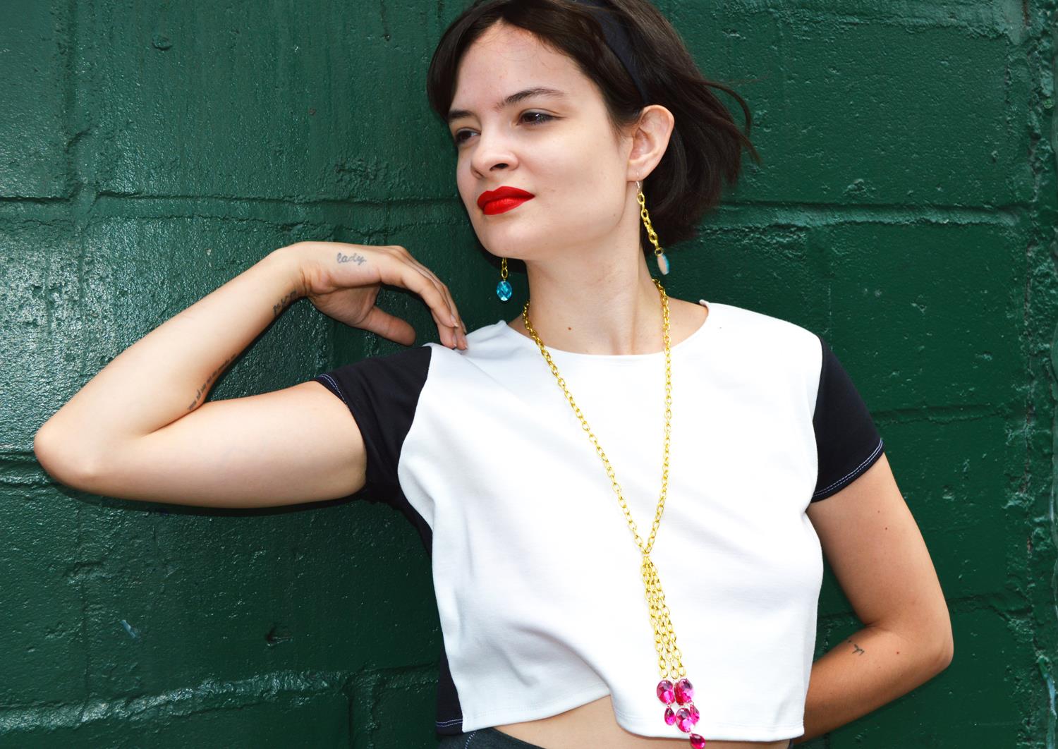 Angel in the Anne Necklace and Ginger Earrings Shop the Lily Earrings, Ginger Earrings, Anne Necklace, Remy Necklace, and Audrey Handchain by clicking the links!