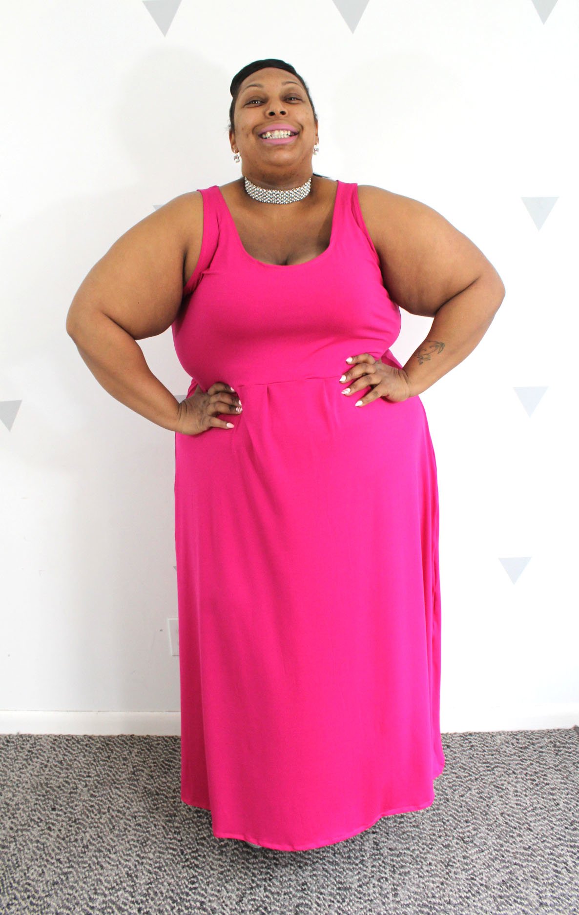 Because #AllMeansAll continues to mean just that; whether that all is demonstrated by gender identity, age, ethnicity, ability, size, or a crossection of all those characteristics. It does not mean a sea of options for our straight-sized customers and then limited stock for our plus size range. Every one of our pieces can be made in XXS-6X and beyond. Many collections don’t serve these women + femmes. And if they do, often they are in dark colors, touting “slimming” effects. We want these babes to live out loud in bright florals and prints – or whatever THEY choose!
